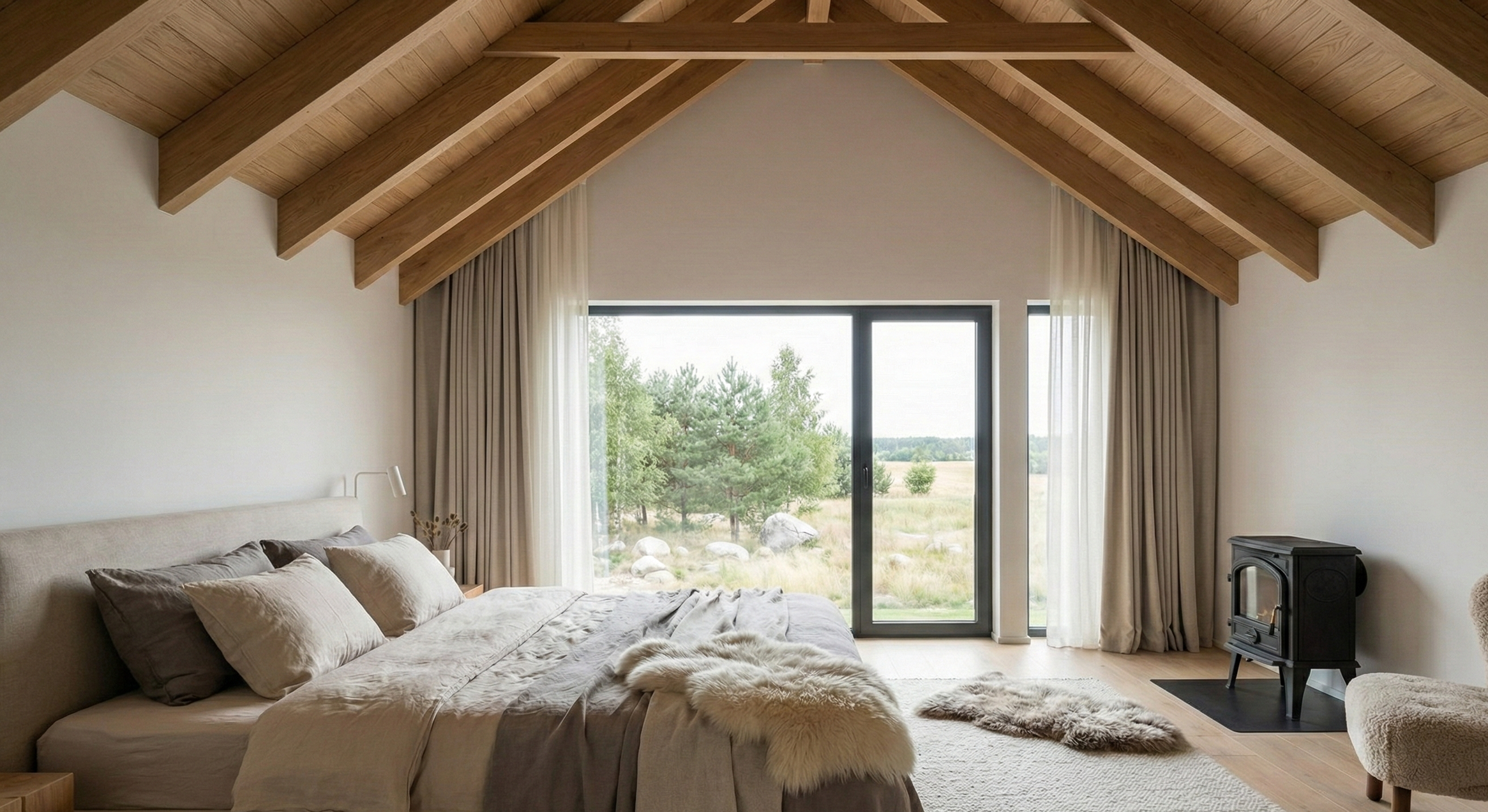 At the heart of the project lies a minimalist internal courtyard featuring a solitary birch tree. This architectural void not only floods the interior with natural light but also creates a private microclimate, shielding inhabitants from Northern winds while maintaining a constant visual link to nature. The interiors, defined by polished concrete and warm oak joinery, reinforce an "atmosphere" of calm and curated order.